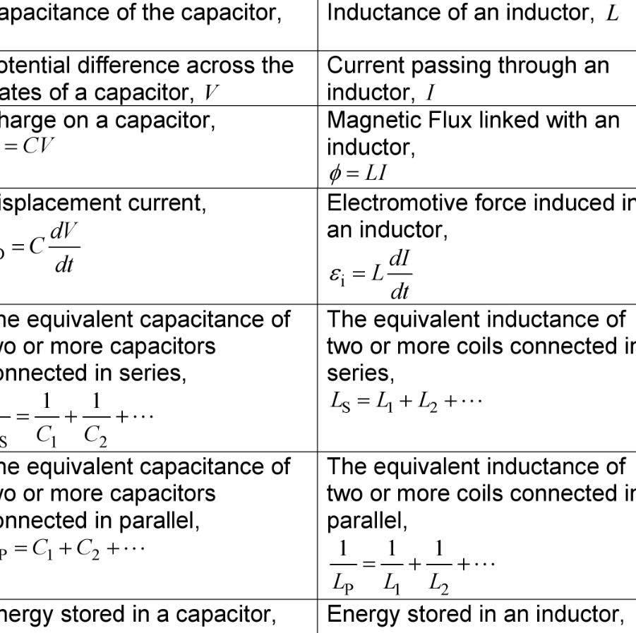 An analogy can be drawn between the formulae related to a capacitor and inductor. Observe the similarity in various quantities that are related to the two.